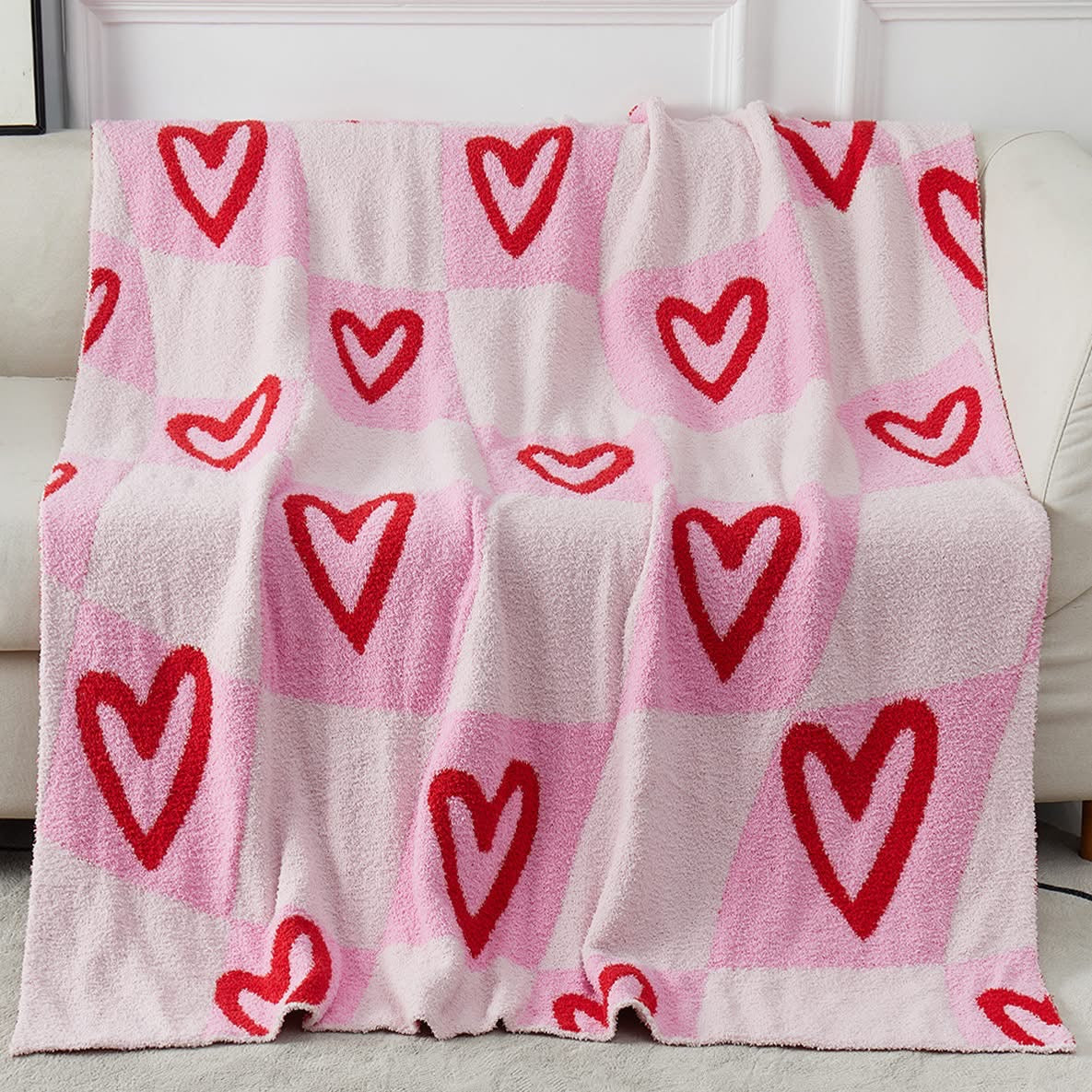 • Heart-patterned blanket for extra snuggle time available in light pink, dark pink, red, or checkered (size: 50x60)